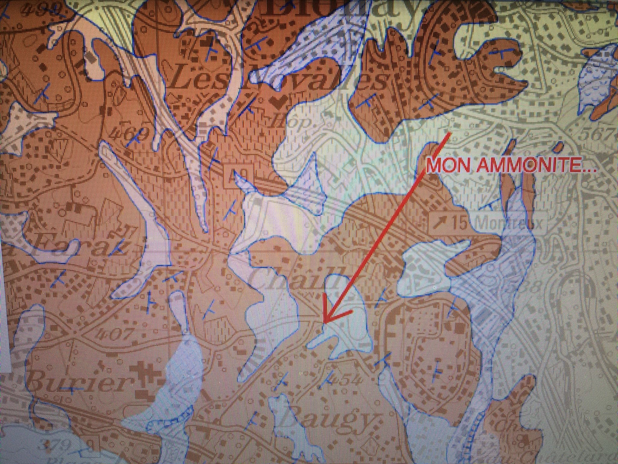 b: Ma belle ammonite est elle solitaire, seule visible sur sa roche, ou peux-tu en détecter d'autres? Combien?Où?