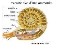 Les ammonites sont une sous-classe éteinte des mollusques céphalopodes. Elles abondaient dans les mers du Jurassique et du Crétacé. Elles sont connues par leurs fossiles. Il en existait des centaines d'espèces d'ammonites différentes, dont la taille a pu varier d'à peine quelques mm. à plusieurs mètres de diamètre.( La plus grosse retrouvée est exposée au musée de paléontologie de Münster(D)et mesure plus de 2m.de diamètre). Elles ont présenté une remarquable diversité de forme ou d'ornementation des coquilles. Leurs coquilles fossiles sont d'excellents marqueurs chronologiques. L' étude de leurs fossiles a permis d'établir une chronologie fine des sédiments du Jurassique. L'ammonite se caractérisait par une coquille univalve plus ou moins enroulée dont seule la dernière loge était occupée par l'animal, les autres loges servant à contrôler sa flottaison ; le siphon qui les relie est en position externe (ventrale), le long de la paroi, alors qu'il est axial chez son lointain"cousin",le nautile.