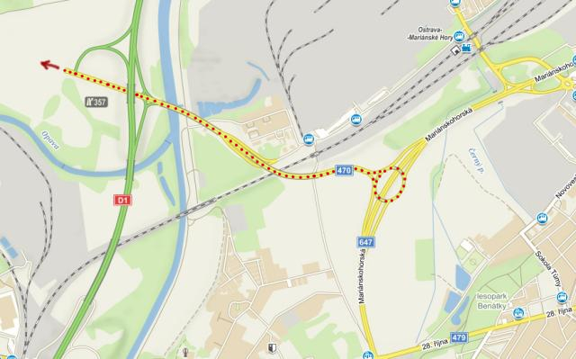 Povede kolem průmyslového areálu dílen Dopravního podniku Ostrava, pak se bude přes ulici Martinovská napojovat na ulici Průběžnou.