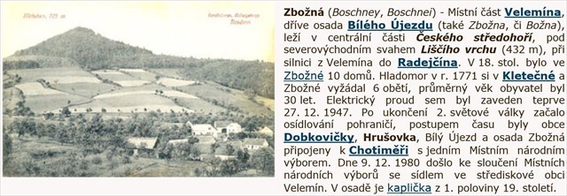 Lze zaparkovat dole u hlavní silnice nebo nahoře přímo v osadě Zbožná. Ideální je dojet si pro kešku na kole. Na hlavní silnici na Velemín je po otevření dálnice malý provoz. Pokud má někdo terénní auto, je sucho, nemohu mu zabránit, aby si tuto kešku odlovil jako drive-in. Ve Zbožné může být natažen přes cestu rozpojovací elektrický ohradník.