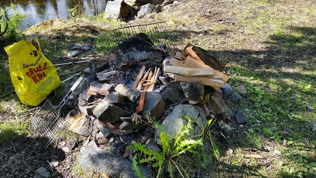 Ta med lite eget som ni känner för att grilla, så ska jag se till att här är en fin glöd till alla. Här finns ett bord med bänkar för ca 6 personer, så ta gärna med några stolar extra om ni vill sitta ner här runt elden.