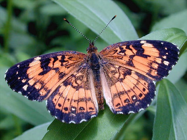 Silvery Checkerspots are usually found on their larval food plant, the Black-eyed Susan. They rest with their wings closed up, showing a lighter coloration on the bottom of their wings. They fly quickly and usually in a straight path to their next resting place. Look for them at waist level as they tend to fly lower to the ground than other butterflies. Adults are very active from spring to autumn. They can be found in meadows, fields, nature trails, gardens and woodlands.