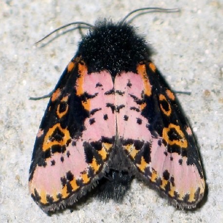 The unusual wing colors and patterns coupled with a furry black 'shoulder wrap' make the fashionable Spanish Moth a true standout.