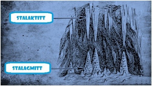 Den kjemiske prosessen i en kalksteinsgrotte, begynner med at regnvannet reagerer med CO2 som er i bakken slik at det dannes mere karbondioksid. Da det er mye mer mikroorganismer i bakkene enn i luften, finner du her 30 ganger mer CO2, noe som er store. Karbondioksidet løser opp kalksteinen som i hovedsak består av kalsiumkarbonat. Dermed vil regnvannet frie ioner av kalk og bi-karbonat lengre og stadig dypere ned i bakken til det til slutt når taket av hulen. Når ionene får kontakt med luften i hulen, skilles de ut av vannet og danner kalksteinen som i sin tur blir byggemateriale for stalaktittene.