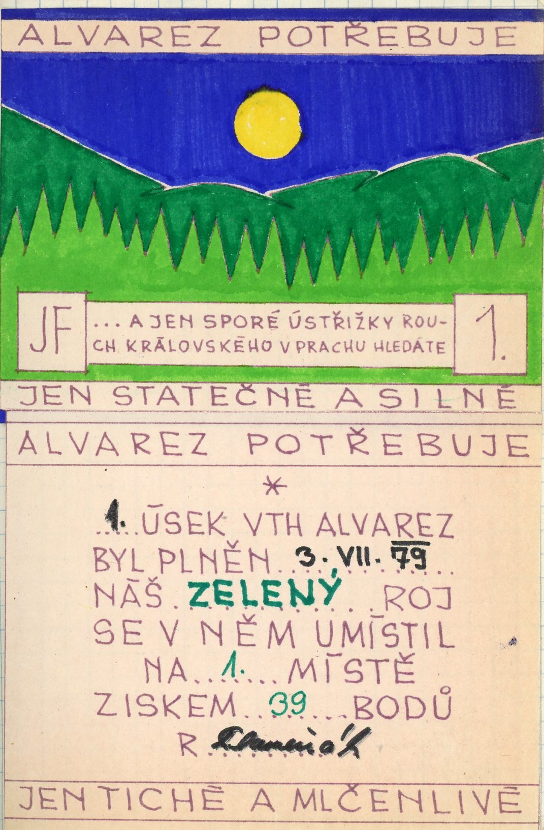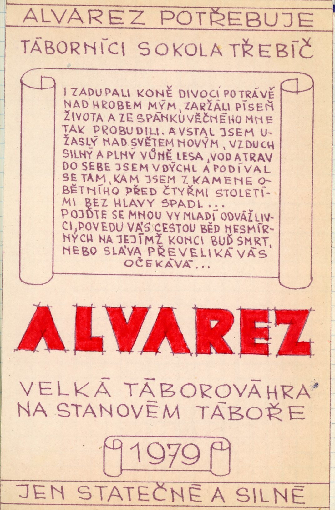 Táborů jsem na této louce prožil ať již jako účastník nebo později jako vedoucí dvanáct. Nevzpomenu si určitě detailně na co se na kterém z nich dělo, ale určitě si vybavím, jaká se hrála velká táborová hra. A kdybych si snad ani na to nemohl vzpomenout, vždy si vybavím svůj první tábor, kde jsme hráli Alvareza. Vám, kteří znáte knihy Jaroslava Foglara – Jestřába, asi netřeba připomínat, o čem tato hra je (a kdo ho nezná, ten si může Alvarezův příběh přečíst v knize Devadesátka pokračuje).