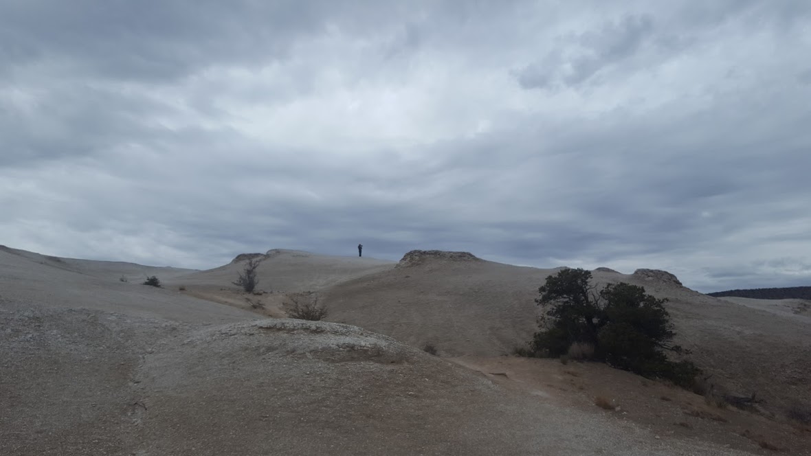When you reach the posted coordinates for this Earthcache, you will be on the top of one of the Gypsum mounds of the Todilto Formation. It makes a surreal landscape, stretching out below you in each direction. Very little plant life has taken hold up here. Gypsum deposits such as the one you are standing on are formed when concentrations of calcium and sulfate in water are increased sufficiently to combine and form gypsum (CaSO4·2H2O). The inland sea or brine pond that was once in this location evaporated depositing the mineral layer you now see. Deposits of mineral sediments in this fashion are called Evaporites. When this occurs crystals can be formed and there are many types of gypsum crystals that have been found around the world. Look closely underfoot and you will find some small gypsum crystals (such as selenite). However, most of what you see around you is finely ground material, formed when the crystals are broken up. This material is called brecciated and is composed of mineral fragments cemented together by a fine-grained matrix.