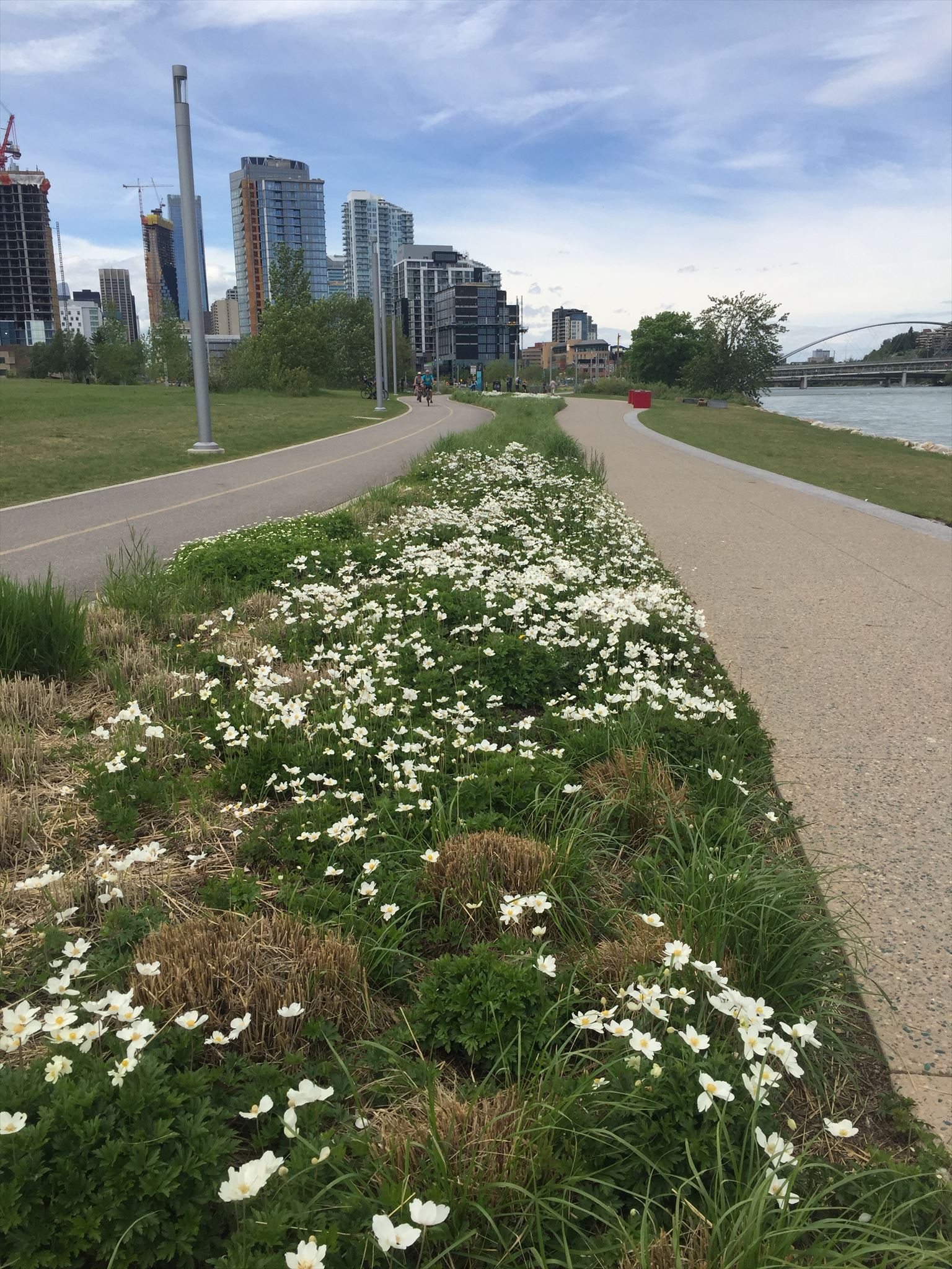 Your trek here, whichever river pathway you took, went along one of Calgary's riparian floodplains. These floodplains were popular among Indigenous people and settlers because of ready access to fresh water, fishing, and hunting. Nowadays, you will find parks like the one you're currently in, neighbourhoods, businesses, and train stations. If you're here on a warm summer day, you'll likely spot at least a few rafts floating down the Bow.