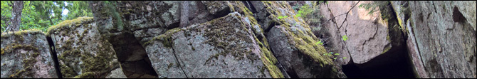 The rocky hills of Hautvuori consist of large stacks of blocky granite between which can be found several caves. During the Bronze Age, the cracked, ruin-like hill has served as a fortress.