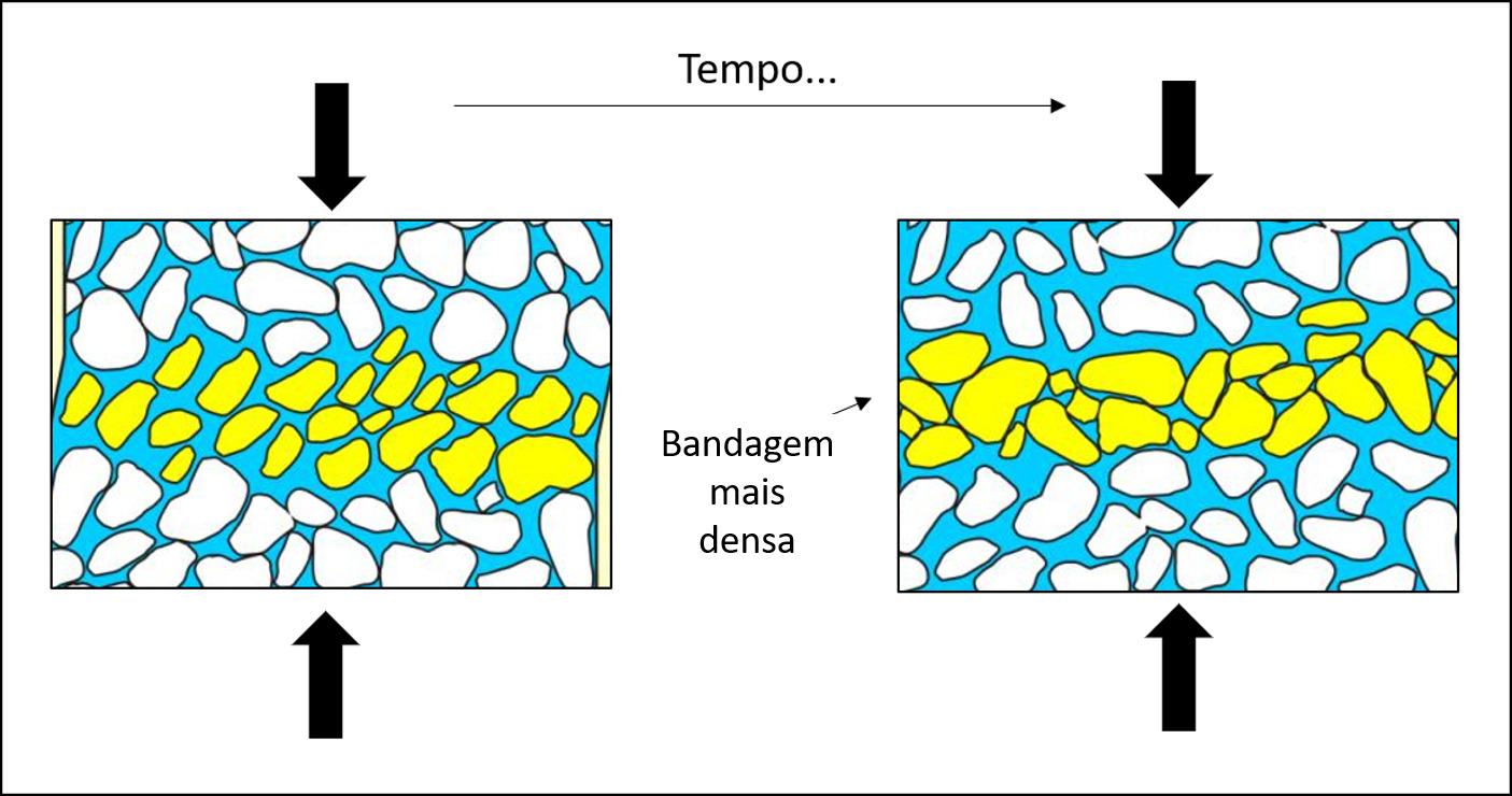 3) No terceiro bloco da contagem ascendente. Na face polida virada a sul e entre a frase em latim e a parte não polida, é possível outros bandados e desta vez de largura menor. Estime a dimensão média da largura. Explicite a direção das tensões exercidas na rocha aquando da sua formação (horizontal, vertical ou diagonal?).