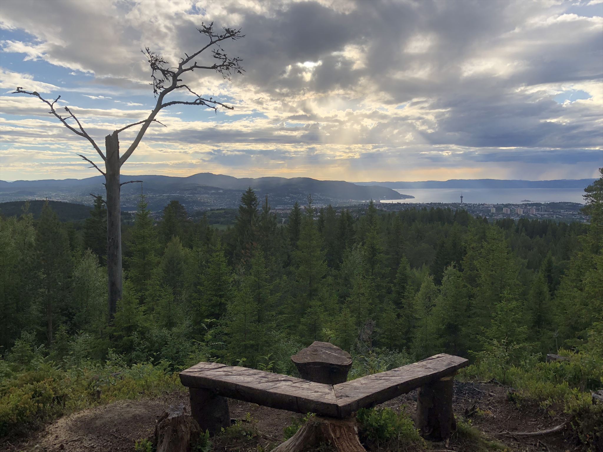 When I first came around this spot, I knew it: this place needs a cache! The view is magificent and there are benches and a campfire. The hike from Bekken parking is partly steep and over rough paths, but worth it. The cache is few 10s of meters away from the view point. I can recommed the open mountain bike map mtbmap.no for finding the paths.