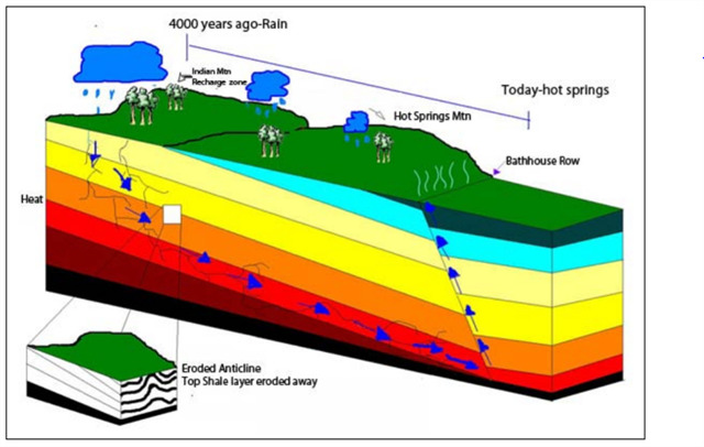 2. MESSAGE …. The diagram shows the fault line, which allows the thermal water to surface at Bathhouse Row. Do you see evidence of that fault? Explain.
