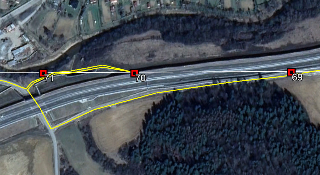 Keška na nachádza za oplotením diaľnice z vonkajšej strany. Odporúčaný prístup je vyznačený na mapke vyššie žltou čiarou.