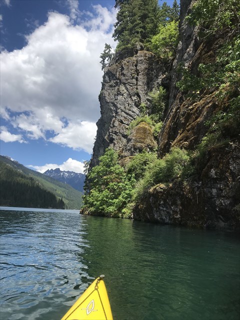 Kachess Lake is a beautiful place to paddle in May and June, before storage control. In the late spring of a good water year, this huge sheet of clear green water, surrounded by old evergreens, with views of steep mountain peaks is amazing!