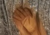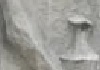 Die Statue weist oberhalb der Tafeln (E) Wunden auf.