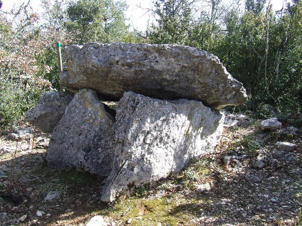 Situe sur la commune de Mejeannes le Clap, je vous propose une petite ballade dans la garrigues pour découvrir ce joli petit dolmen dont la table est inclinée suite à l'affaissement d'un des supports. Marqué sur les cartes IGN, il est facilement accessible à partir du chemin qui démarre au sud de Méjannes près de la capitelle.