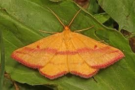 Bright yellow with vibrant markings of pink, the low-flying Chickweed Geometer is a cheerful summer moth that shows its colors all day long.
