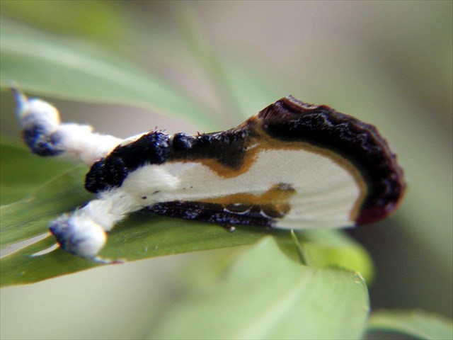 It is believed that the strange color and pattern seen on the Beautiful Wood Nymph Moth is a form of camouflage. Their multicolored appearance resembles bird droppings. Indeed, such an adaptation is a clever means of avoiding predators. When found resting on a leaf, this moth is easily overlooked. Even their furry legs stretch out in such a way as to look help it look like a splat of feces.