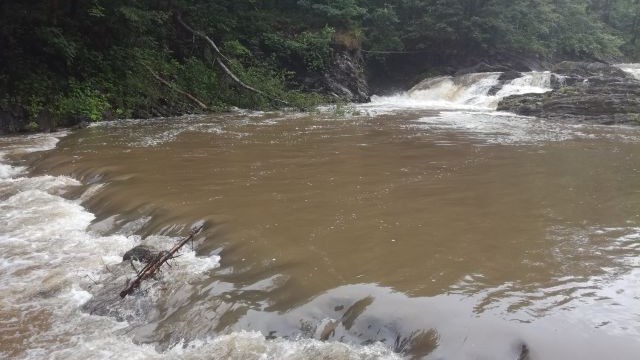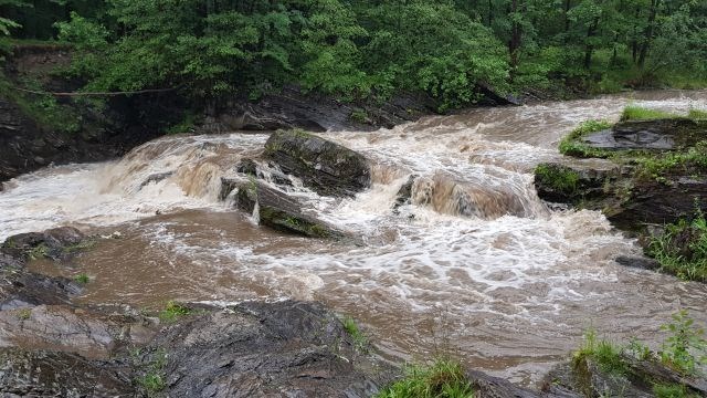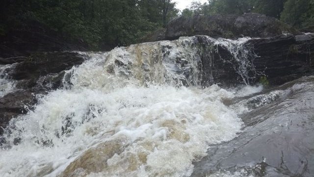 - Odhadněte šířku řeky v místě, kde je šířka největší (pod vodopádem, viz foto).