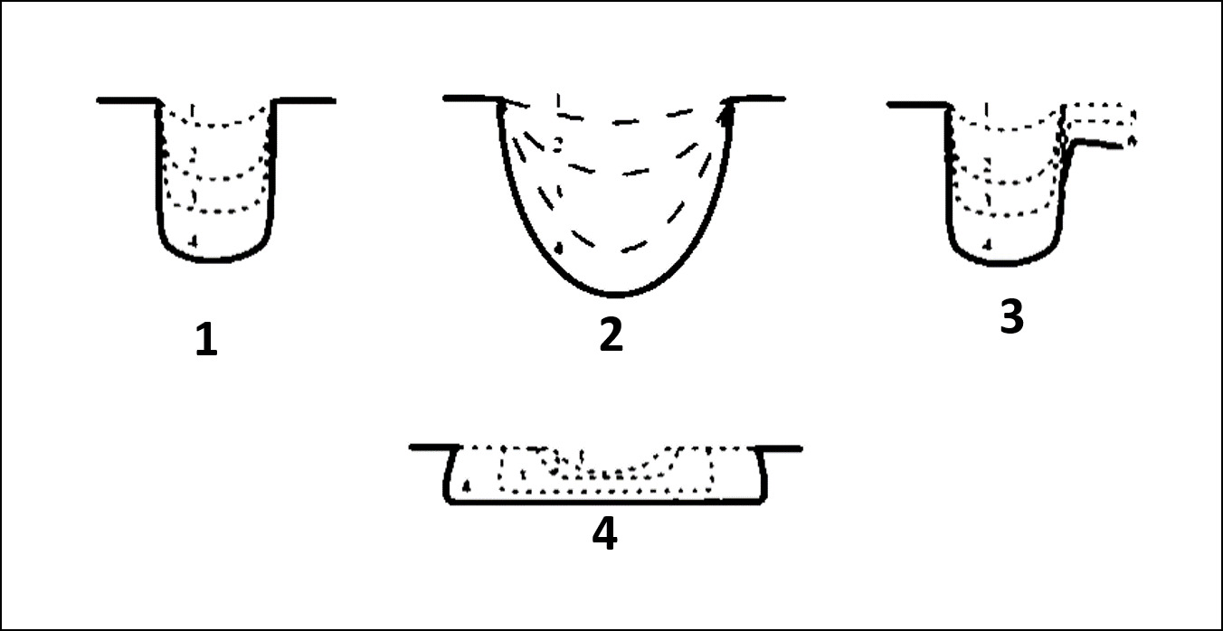 2) ¿Qué tan profundo es el pía más grande? ¿El fondo de este pía es plano o tiene diferentes niveles de erosión?