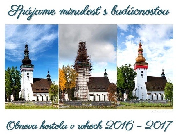 7.) V rokoch 2016 - 2017 prebehla kompletná výmena šindľovej krytiny na kostolnej veži vrátane zreštaurovania strešnej konštrukcie veže - trámy, ktoré sa nedali zachrániť, boli vymenené. Takisto bola obnovená a namaľovaná fasáda veže.