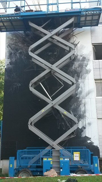 En arrivant au pz, vous apercevez 2 fresques. La plus proche "Mockingbirds" a été réalisée en 2017 par un artiste croate Lonac. Elle représente un homme un banjo à la main et des oiseaux. Cette fresque révèle un long travail de précision, de minutie et de l’importance du détail. Admirez la réalisation des plis, des cheveux et des poils de la barbe.