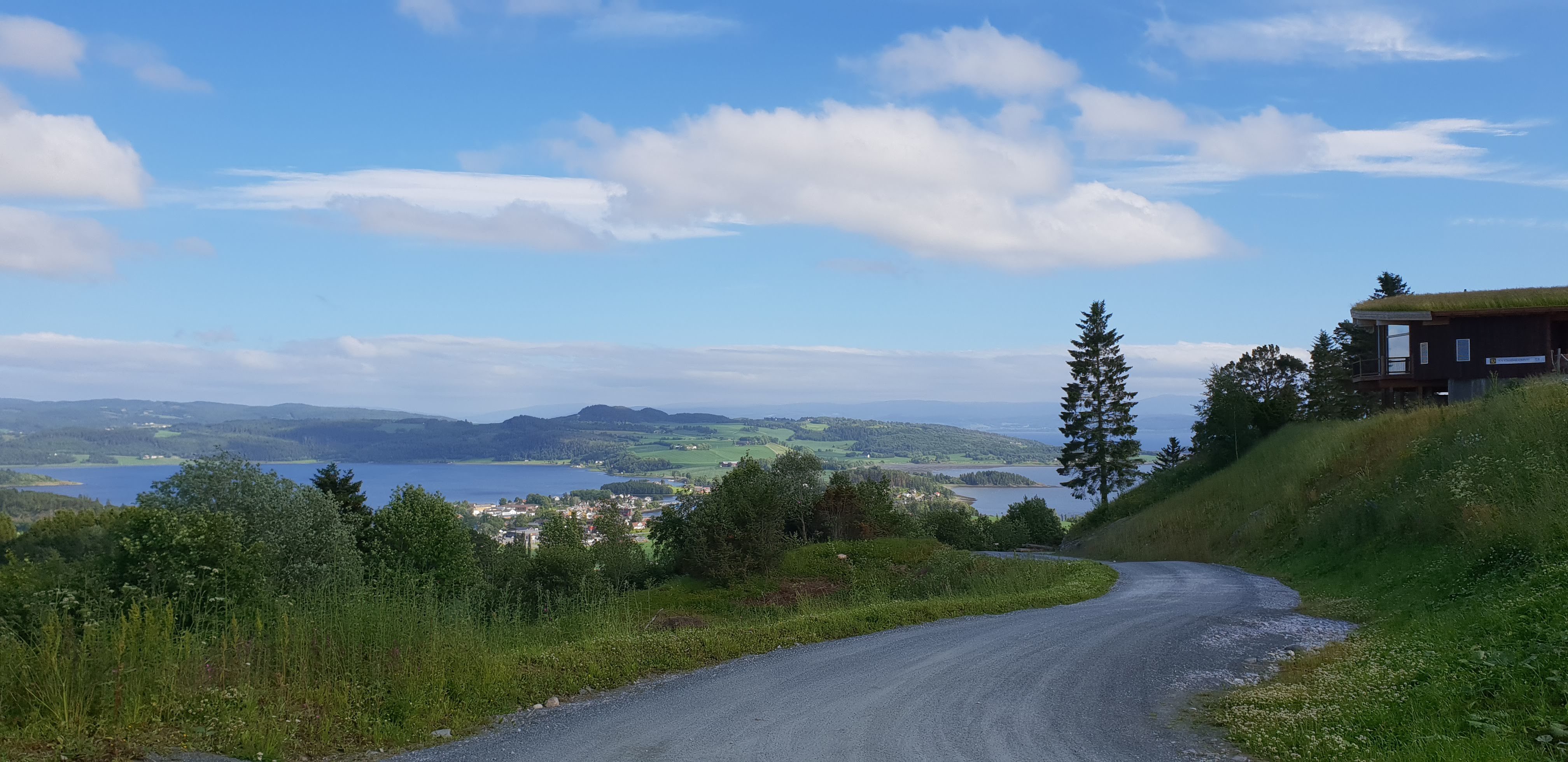 Possibly the most spectacular view in this entire region. From the Sakshaug top, near "Øyna", one can see a lot of the might Trondheim fjord and the "Innherred" region. Mountains in the far distance as far as Sweden and the gentle farmlands of Inderøy beneath you. A stop here is highly recommended. There are also fascilities for visitors nearby and you pass farms and the old church on your way up here.
