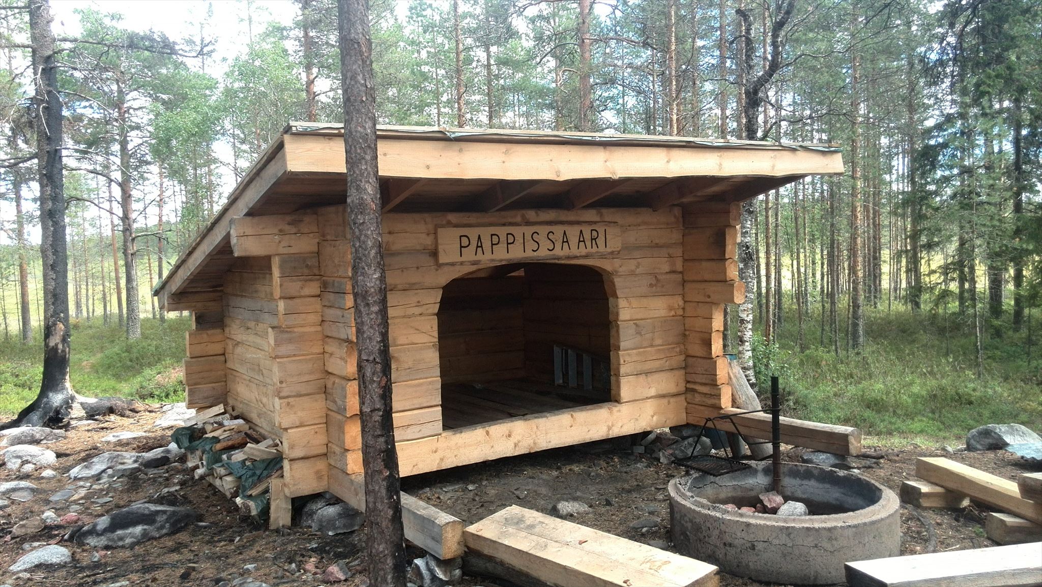 Uusi purkki uusitulla laavulla. Sievin seurakunta on rakentanut uuden laavun Pappissaareen kesällä 2017 tuhopolton uhriksi joutuneen laavun tilalle. Pappissaareen voit patikoida Sievin urheilukentältä tai lähempää metsäautotien varrelta (P-paikat). Matkan varrella on useita muitakin kätköjä.