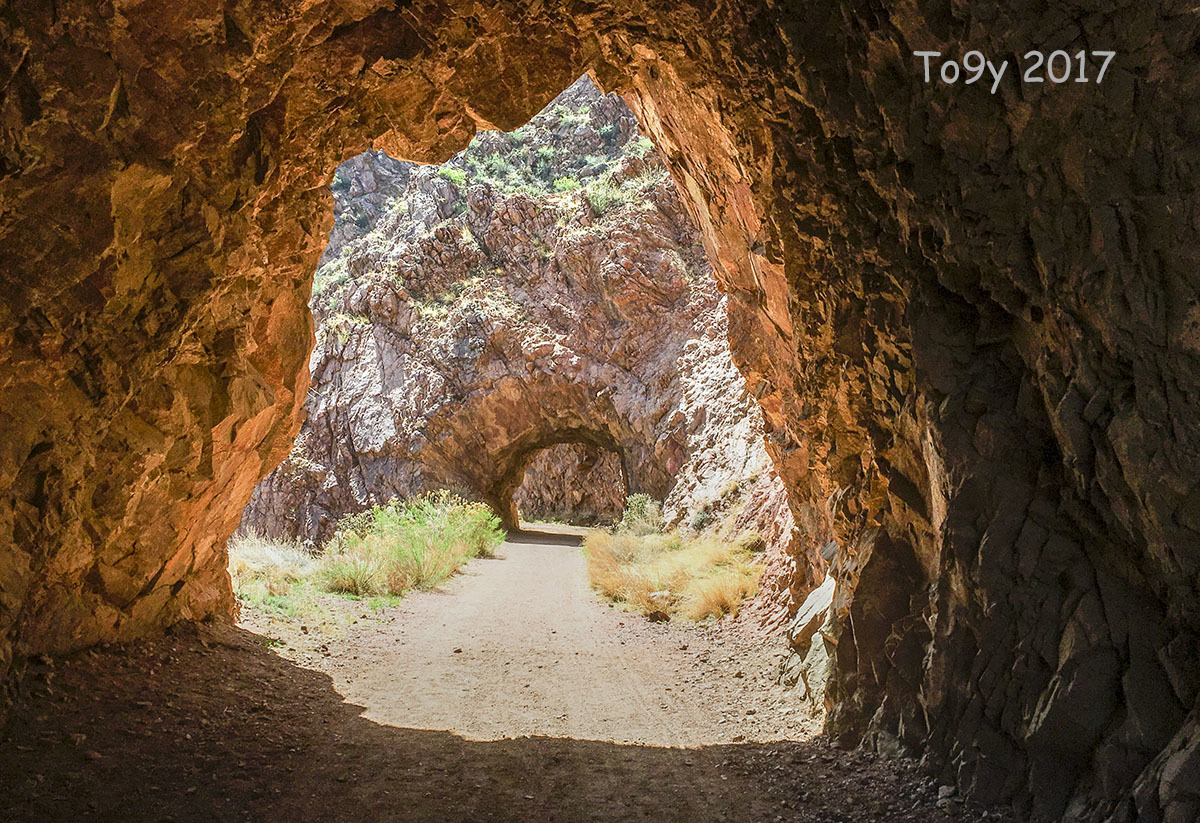 Tunnel Drive Trail is located just west of Cañon City. It is a spectacular 2 mile (4 miles round trip) trail that passes through three tunnels bored through solid granite, traverses a couple of bridges, and ends just short of the Royal Gorge. This cache is one mile from the trailhead. The first 0.2 mile is uphill, and the trail is almost level after that. The cache is about 200 feet off the trail and requires navigating some steep terrain and avoiding a cactus minefield. No scrambling is required if you pay attention to your route.