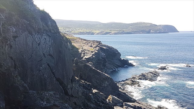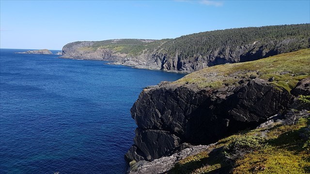 As for the cache, we like to play safe. While you may be comfortable with having your drink or snack down at the edge of the cliff, the cache is placed well back of the point of land and the cliffs. The cache is a 600mL camo'd container, with the usual swag and a TB upon initial hide.