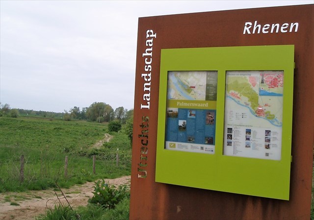 Zoek de cache en vind de coördinaten op het informatiebord “Rhenen, 10 hoogtepunten aan de Rijn”.