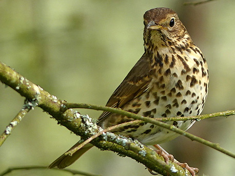 Comportement : s’observe souvent au sol, à découvert, où elle court ou sautille. La grive musicienne est grégaire uniquement pendant les migrations.