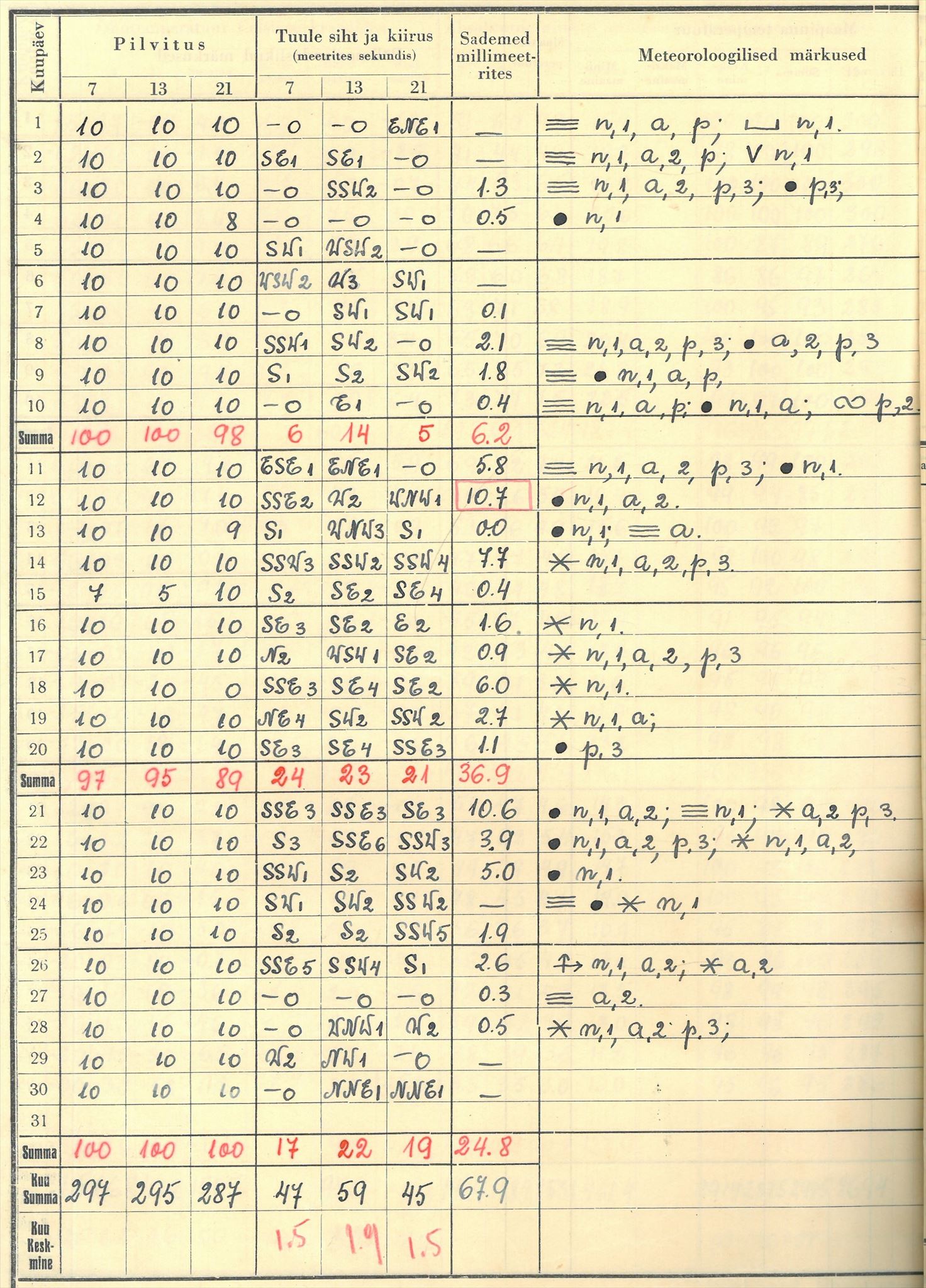 G - Mitu palli oli pilvisus 4. kuupäeval kell 21?