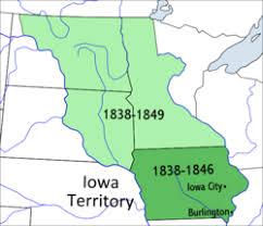 There are no pictures of Shirley Morgan, band queen of 1938, nor was I able to find any pictures of the 1938 Band Festival Parade. Instead below you will find a map of all the land area the Territory of Iowa encompassed in 1838.