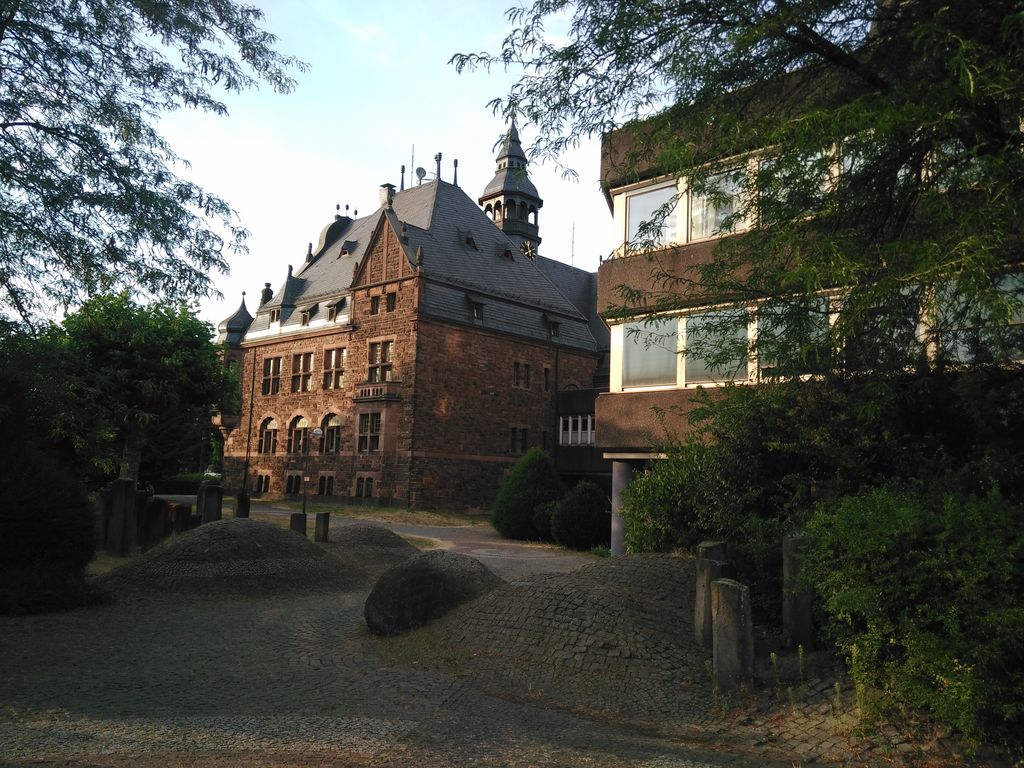Das neuerrichtete Rathausgebäude sollte zwar in erster Linie den gestiegenen Anforderungen der Gemeindeadministration Rechnung tragen, aber auch das Repräsentationsbedürfnis der aufstrebenden Industriestadt befriedigen. Das aus rotem Sandstein erbaute, schiefergedeckte Rathaus wurde von Wilhelm Franz, Professor an der Königlich Technischen Hochschule in der damals noch selbständigen Stadt Charlottenburg, in einer Mischung aus Neorenaissance und Jugendstilelementen entworfen. Wilhelm Franz war vor seiner Lehrtätigkeit in Charlottenburg in St. Johann an der Saar Stadtverordneter und Regierungsbaumeister gewesen und hatte die Bauarbeiten des Rathauses St. Johann, das von Georg von Hauberrisser entworfen worden war, geleitet. Beide, Franz und Hauberrisser hatten sich beim Bau des Neuen Rathauses in Wiesbaden kennen und schätzen gelernt. Wilhelm Franz ließ sich infolge seiner Arbeitsbelastung an der Technischen Hochschule Charlottenburg