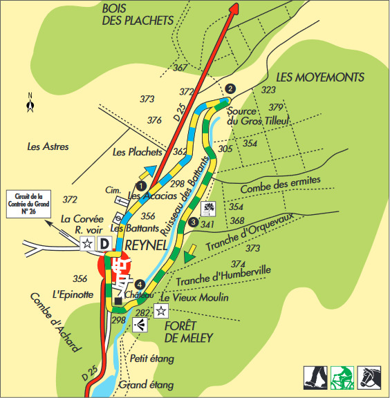 Le chemin débute sous l’éperon rocheux sur lequel trône le château.
