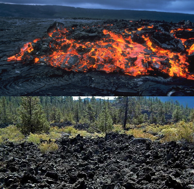 Coming back to this spot, there is a little more to say about the lava rock that you're standing on. Lava is named and classified depending on how it flowed, which gives it different shapes. The different types are: