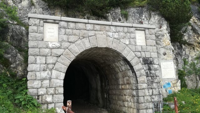 The "Road of the Heroes" is the 2 km long stretch connecting the Galleria d'Havet to the Achille Papa refuge, located at the "Porte del Pasubio", in the municipality of Valli del Pasubio. Excavated on the orographic right of the vertical walls on the impervious Val Canale, it has a rather rough natural background.