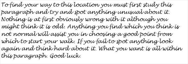 One of these Co-ordinates is correct – but which? You could just go to all and find out. A. N 51° 55.108 W 003° 02.456 B. N 51° 54.107 W 003° 02.438 C. N 51° 54.777 W 003° 02.682 D. N 51° 54.467 W 003° 01.292 E. N 51° 54.000 W 003° 01.818 F. N 51° 53.666 W 002° 59.920 G. N 51° 53.435 W 003° 02.142