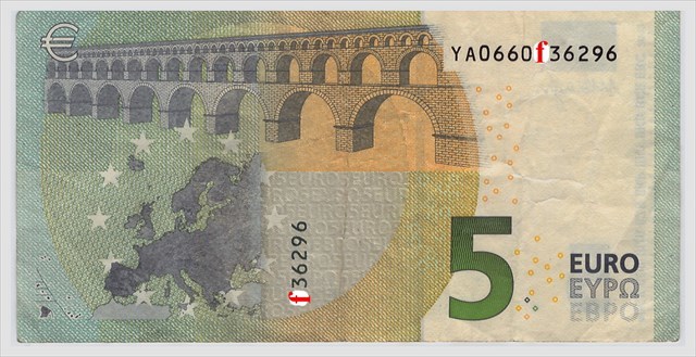Die Euro-Banknoten weisen verschiedene Sicherheitsmerkmale auf, mit denen Fälschungen verhindert oder zumindest erschwert werden sollen. Eines dieser Merkmale ist die Seriennummer. Bestimme die Werte der Buchstaben a bis f, so dass jeweils eine gültige Seriennummer entsteht (dargestellte Noten alle aus der "Europa-Serie" nach 2013):