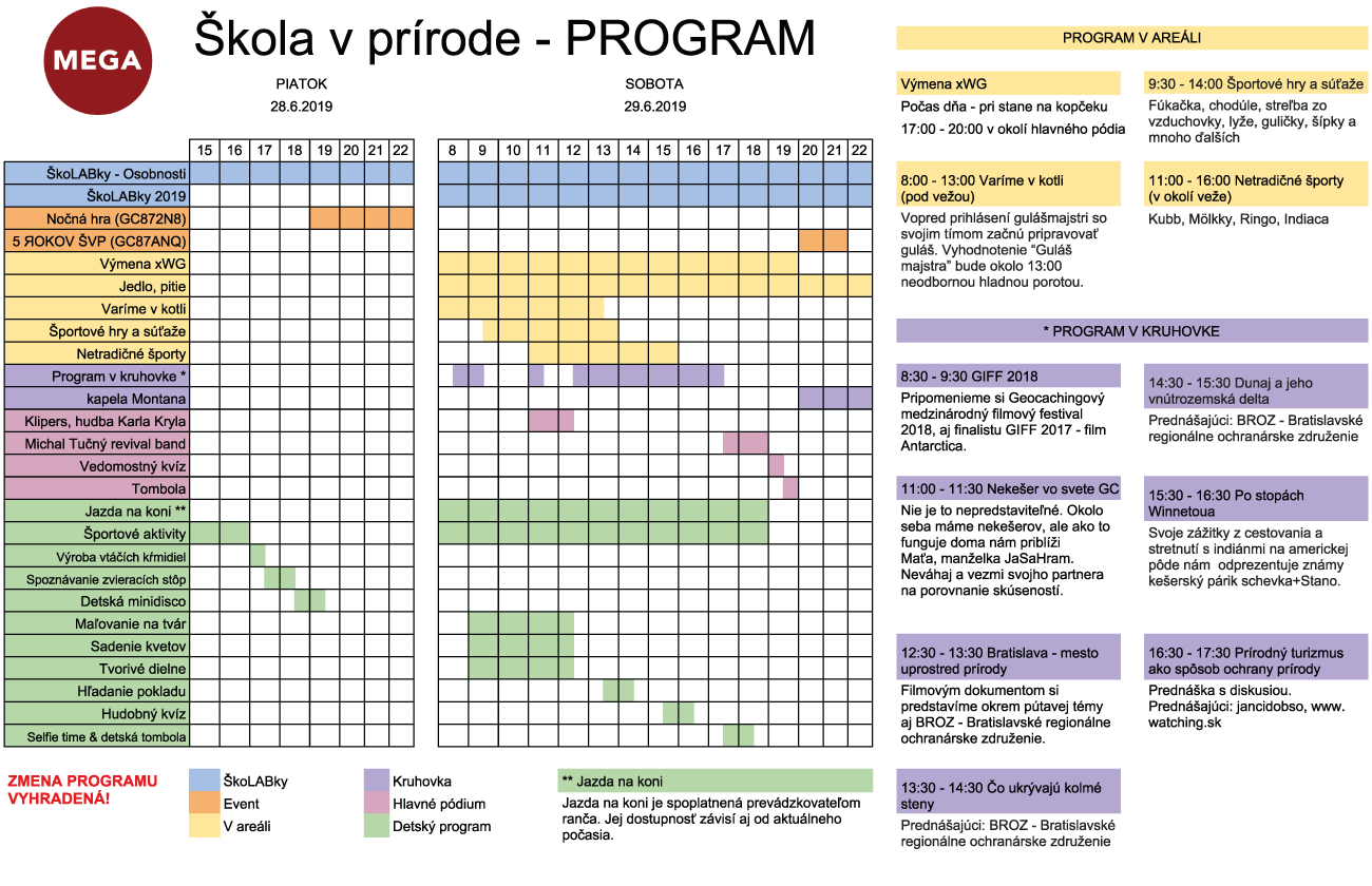 Vasárnap reggel majd elbúcsuzunk egymástól, és kezdhetünk örülni az Iskola a természetben következő, hatodik évfolyamára. A sátrakat, szállást, a részvételt az előadásokon és a játékokon előre jelenteni és lefoglalni kel a megac.sk címen.
