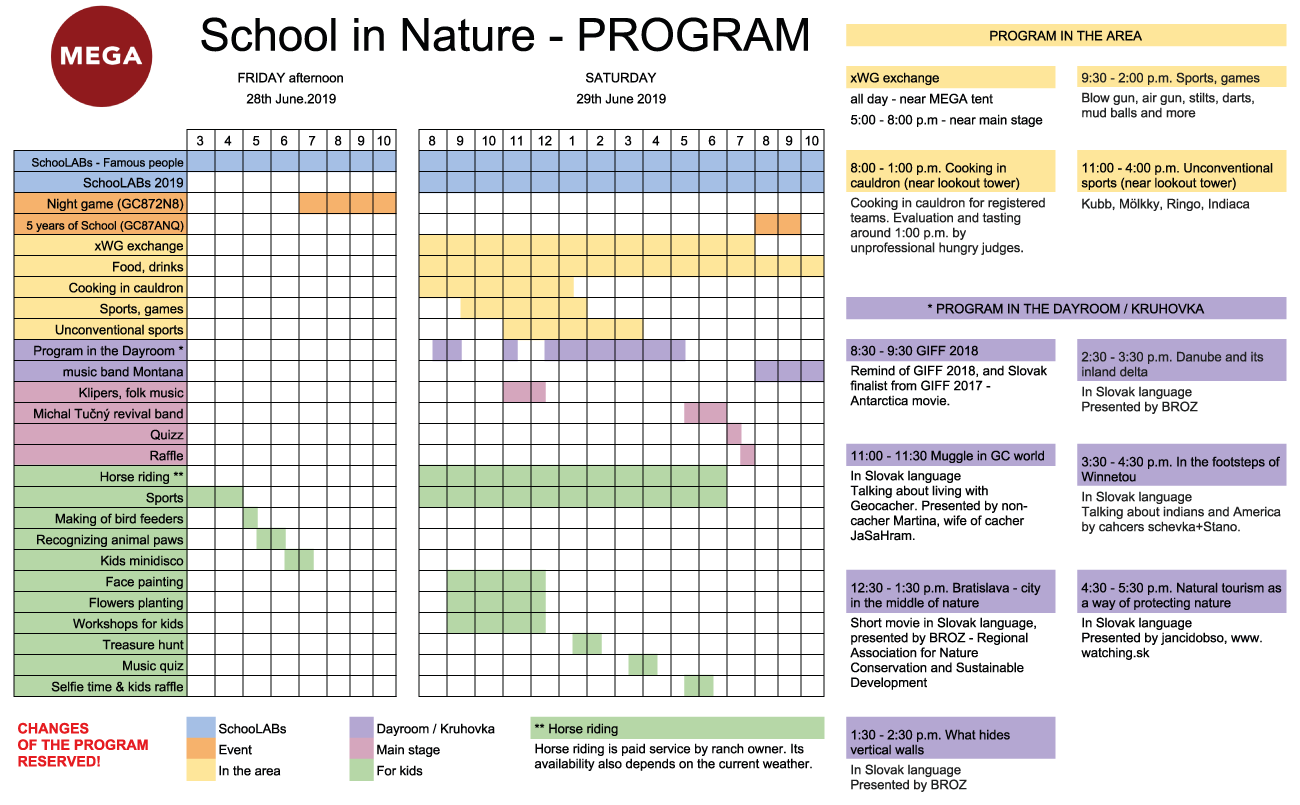 Bitte gib im Log auch die voraussichtliche Teilnahme der Kinder und deren Alter an. Bitte logge möglichst früh. So erleichterst du die Organisation der Veranstaltung und kannst das reichhaltige Angebot uneingeschränkt nützen. Beobachte die Neuigkeiten des Listings auf megac.sk und FB.
