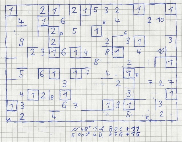 Nach einer alten Sage, soll in den Wäldern nahe Herbolzheim vor vielen vielen Jahren ein Mörder sein Unwesen getrieben haben. Will man der Sage glauben schenken, hat der Mörder jedem seiner Opfer ein eigenes Grab geschaufelt. Wie viele es waren will heute keiner mehr wissen... Niemand konnte den Mörder jemals fassen. Er soll nur die reichsten Bürger Herbolzheims ermordet, und ihre Reichtümer mit ins Grab genommen haben. Dieses Grab habe er laut Sage selbst erbaut. Zudem soll er sich mit den Reichtümern lebendig begraben haben, um sicher zu stellen, dass niemand seine Reichtümer jemals zu Gesicht bekommt. Nach langer recherche konnte ich diesen Zettel finden, welcher angeblich die Position verraten soll, wo sich das Grab des Mörders befindet. Leider konnte ich dieses Rätsel nicht lösen, weshalb ich nicht sagen kann, ob diese Sage wahr ist...