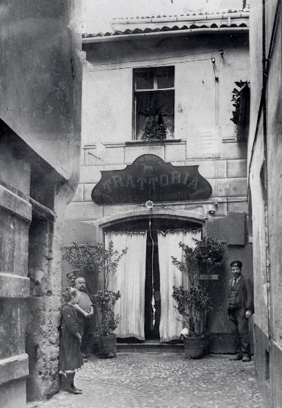 Adesso la trattoria non esiste più, ma sopra il portone sono visibili due targhe poste a memoria della nascita della Società.