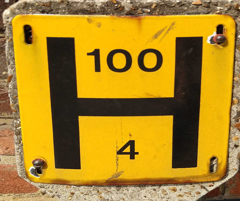 The cache, a magnetically attached bison, is located a short walk from the sign due to proximity issues. To the SW of the sign, just in front of a pair of cottages, is a sign with a yellow background. On the sign are a 3 digit number ABC, a one digit number D and a letter which is the Gth letter of the alphabet. EF can be obtained by dividing the 3 digit number by the 1 digit number. The cache can be found at: