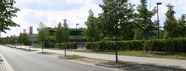 Das Marie-Curie-Gymnasium wurde 2004/2005 nach einem preisgekrönten Architektenentwurf erbaut. Doch nicht nur von vorne (siehe Foto), auch von der Seite ist es sehenswert - dorthin führt Dich dieser Cache. Dieses Plätzchen im Grünen neben dem Gymnasium schien mir thematisch ideal passend, um eine Versteckidee umzusetzen, die mich in Nürnberg begeistert hat.
