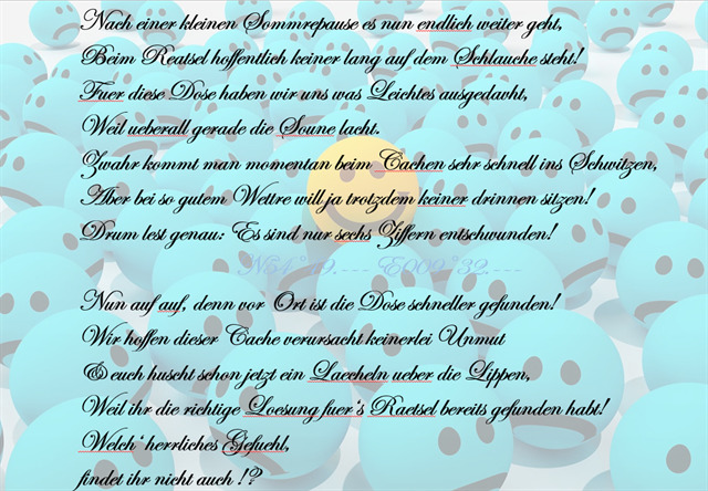 Hier nun der 10. Cache der "Entschleunigungs-Keep-Smiling"-Tour: