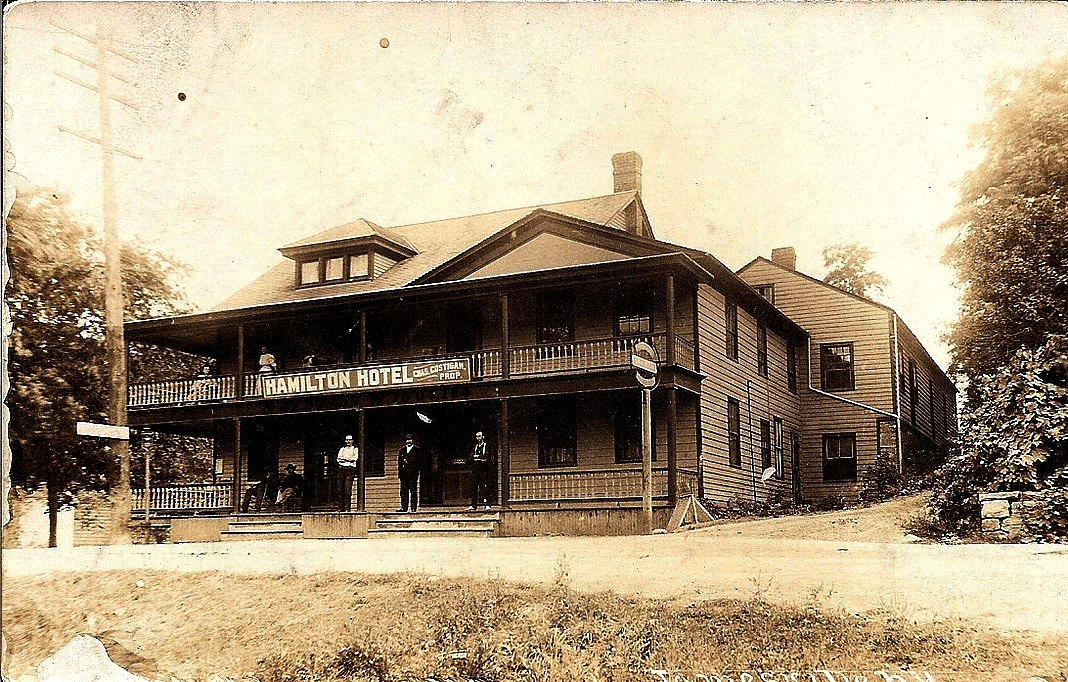 We never heard if the Kortright House ended up being the finest hotel outside of Syracuse. But we found a picture of another hotel in Jamesville, the Hamilton Hotel, that was operating quite successfully in 1905. It was also not too far from where the Bringing Jamesville History to Light Cache is located. The picture below can help you find the exact location of this cache. There is quite a contrast between then and now. Please BYOP.
