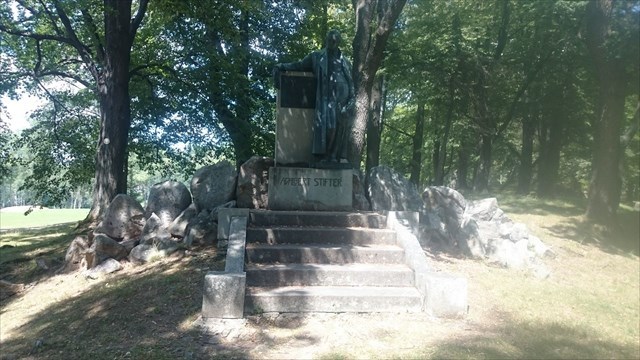 Keš je věnována zdejšímu spisovateli a rodáku Adalbertu Stifterovi, který se narodil 23. října 1805 v Horní Planá a zemřel 28. ledna 1868 v Linci. A.S. byl česko-rakouský spisovatel, malíř a pedagog.