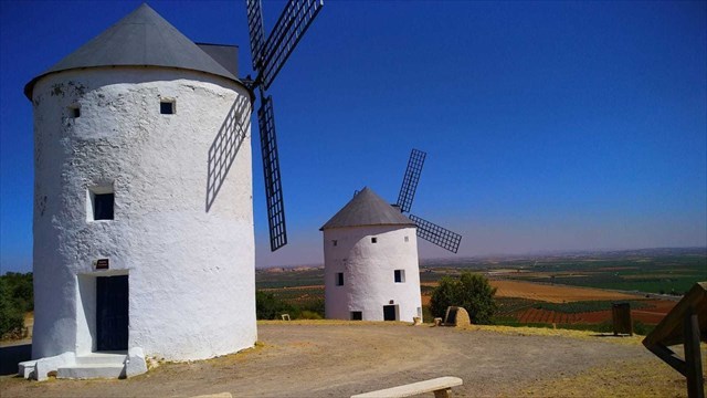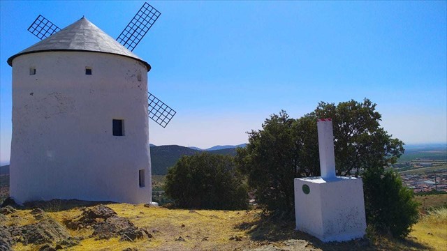 Se anota el punto de salida del camino asfaltado que llega hasta el conjunto monumental de Los Molinos.