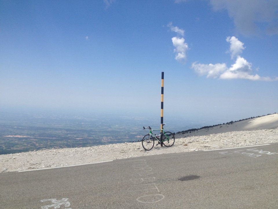 Below is a picture of my bike in 2014 on Mont Ventoux. It's a very nice bike. A carbon fibre frame, 622mm diameter wheels (but with fully inflated tyres that's 700mm), 11-28T 10 speed cassette, 50-34T chain ring and metal seat post.